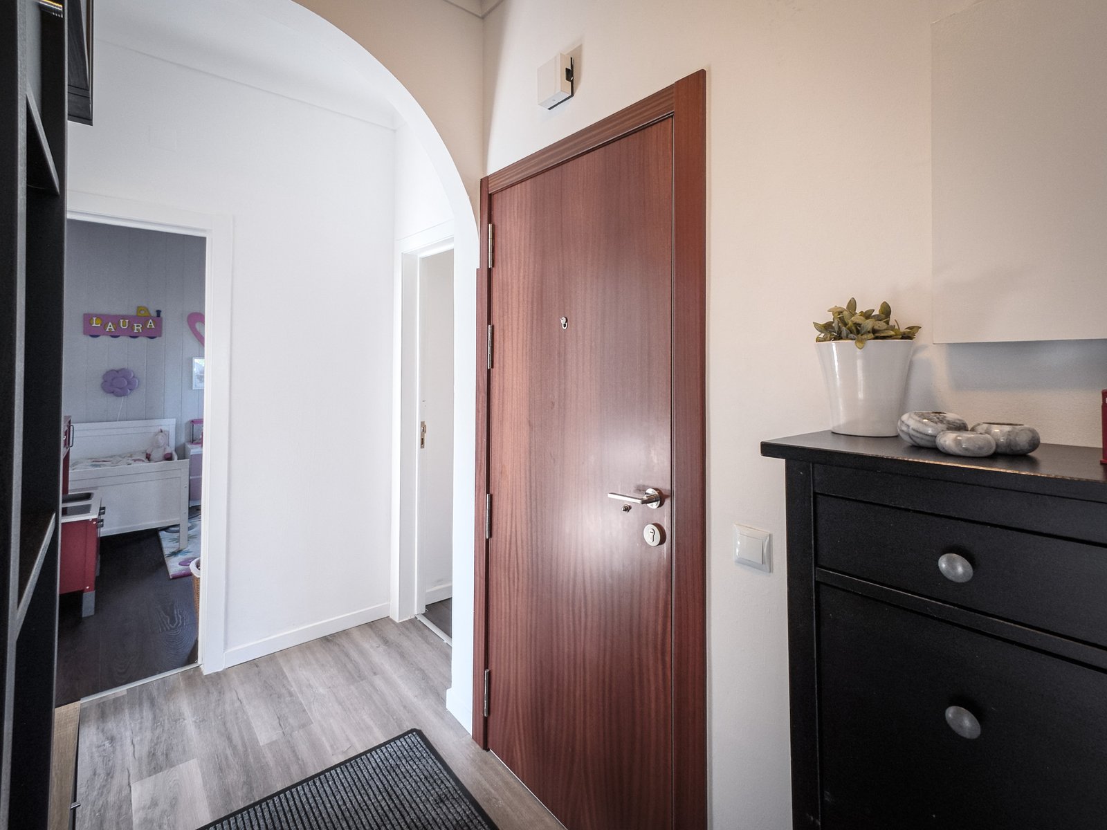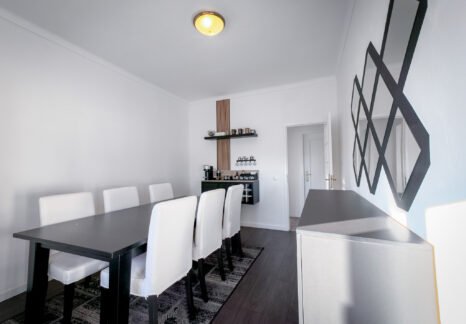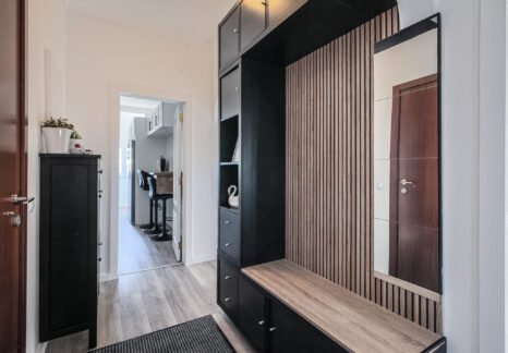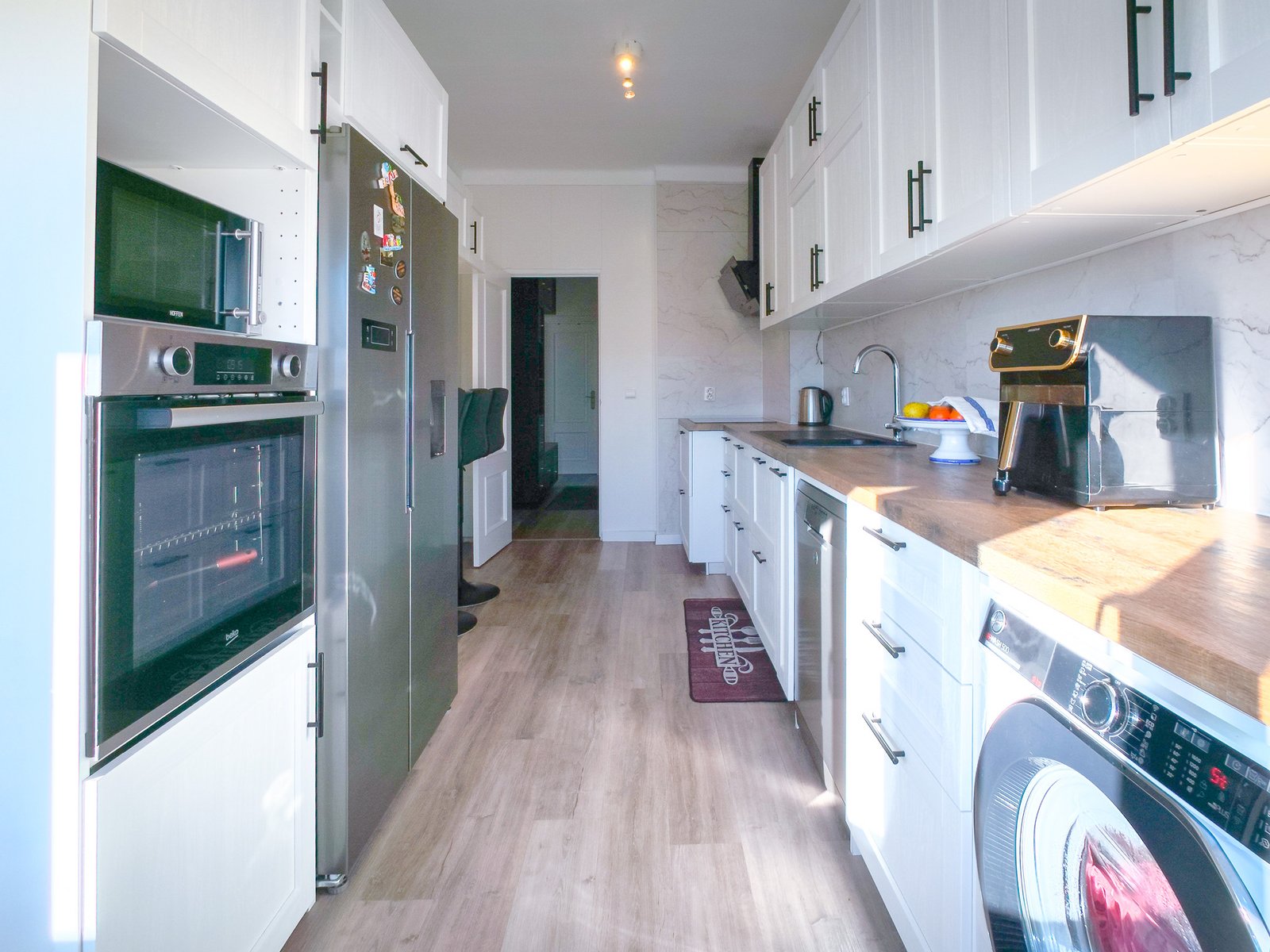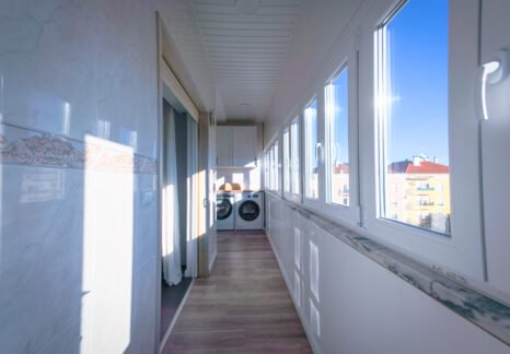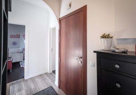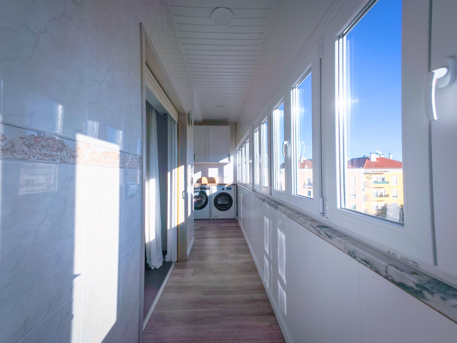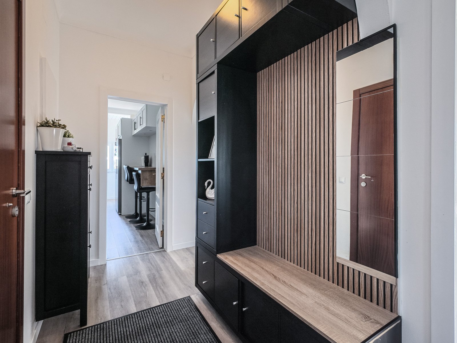 – Hall com pavimento flutuante, dispondo de uma segunda despensa e oferecendo uma circulação funcional entre as divisões.