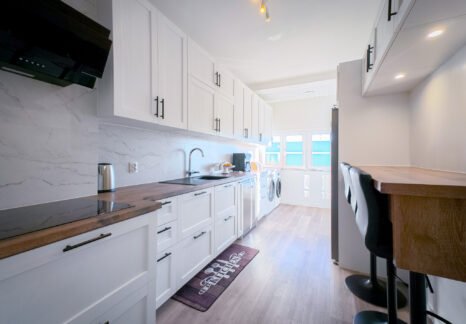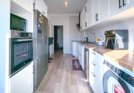 – Cozinha com cerca de 15 m², equipada com armários embutidos, placa de indução e termoacumulador, complementada por uma ampla marquise de aproximadamente 10m2, com vidros duplos em toda extensão, onde se encontra também uma prática despensa.